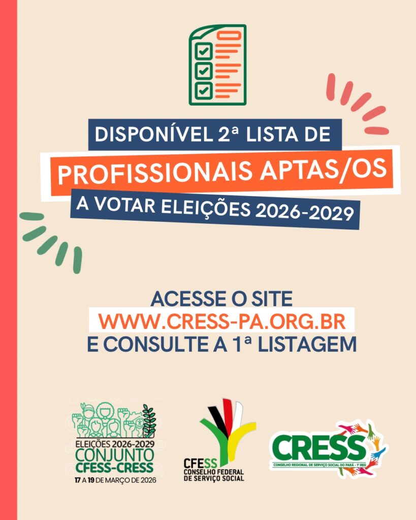 CRESS-PA DISPONIBILIZA A 2ª LISTA DE PROFISSIONAIS APTAS/OS PARA AS ELEIÇÕES CFESS-CRESS Leia mais »